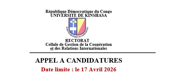 Une fois le dossier constitué, une copie sera déposée au secrétariat de la Cellule de Gestion de la Coopération et des relations internationales en fichier électronique à l’adresse cellcoop@unikin.ac.cd pour toute œuvre utile